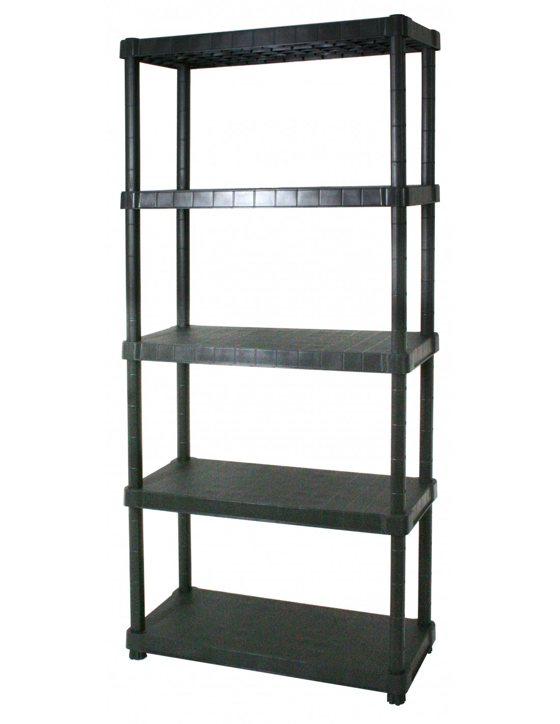 a 5 ripiani in polipropilene antiurto. Portata max 300 kg. Dimensioni 90x40xh 188 cm. Dimensioni confezione 90x40xh26 cm. Colore nero. Peso prodotto 11,4 kg. Peso confezione 11,5 kg.