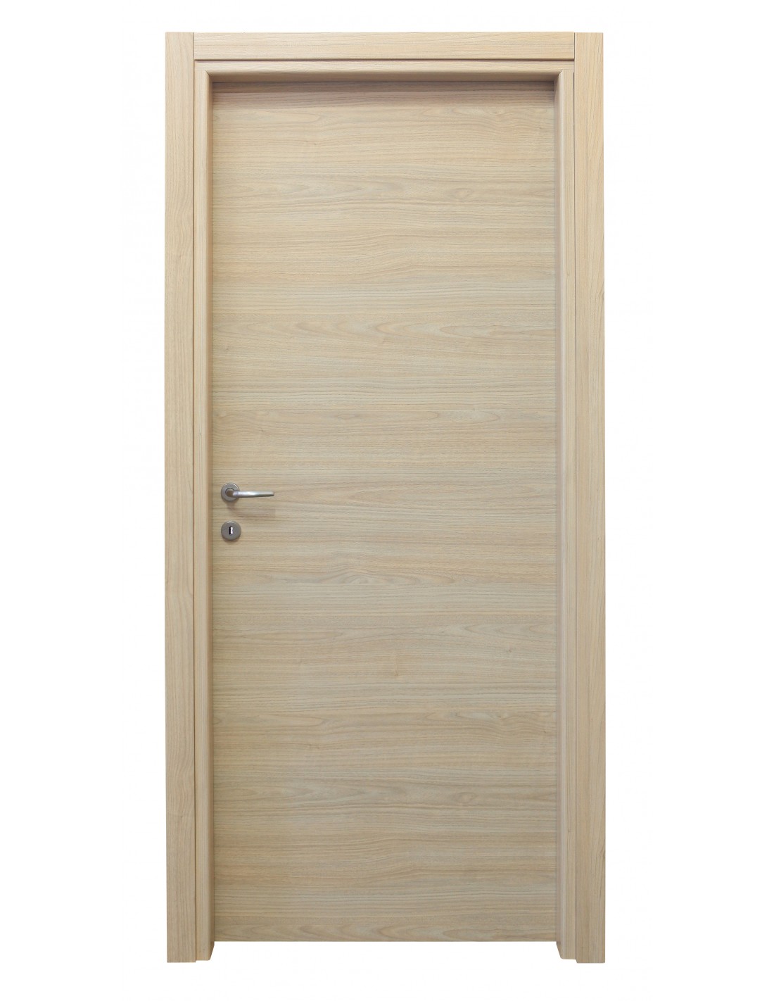 Anta tamburata di spessore nominale 44 mm, riempimento in cartoncino trattato, placcato con pannelli in MDF spessore 3/4 mm nobilitato con carta finish. Telaio piatto in MDF di spessore 40 mm con guarnizione di battuta di gomma. Coprifilo telescopici esterno ed interno in Mdf da 60 mm con aletta utile da 8 mm. Ferramenta serratura mediana. Anuba reversibili. Dimensioni 210x80 cm. Colore Rovere sbiancato