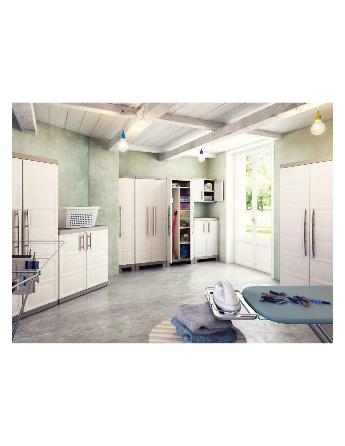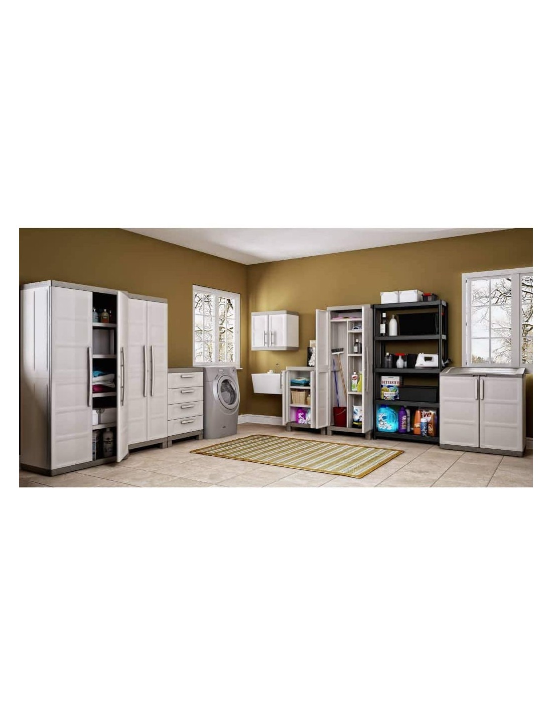 L'armadio PVC Excellence XL è un contenitore con 2 ripiani interni che supportano un peso di 25Kg a ripiano estremamente compatto con dimensioni L 89 x P 54 x H 93 cm.