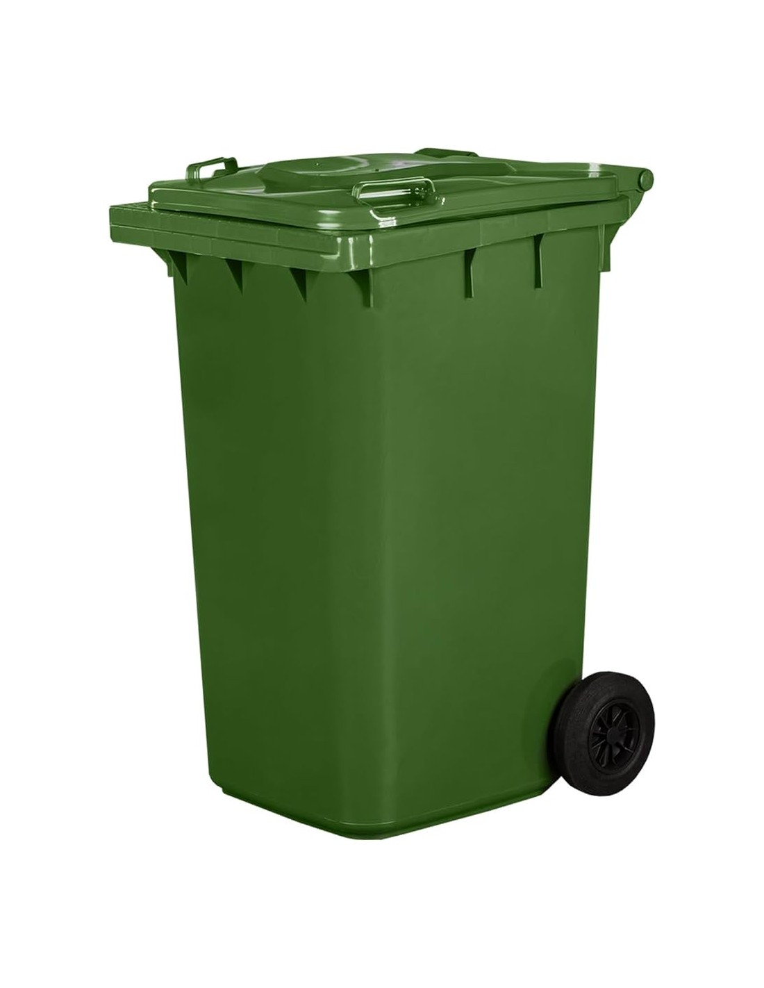 Bidone carrellato 240 litri a due ruote per la raccolta differenziata. Prodotto realizzato in HDPE (polietilene alta densità) 100% riciclabile, stabilizzato UV per utilizzo in ambienti esterni. Capacità di carico max 116 kg. Presa frontale di tipo A che lo rende compatibile con i mezzi incaricati alla raccolta dei rifiuti. Dotato di due ruote in gomma diametro 200 mm. Grande maneggevolezza, maniglie ergonomiche, bordi e spigoli arrotondati. Coperchio con apertura a libro e bordo anti infiltrazione, sede per alloggiamento microchip, elevata resistenza meccanica ed agli agenti chimici, facile da pulire e sanificare. Disponibile in 7 colori
