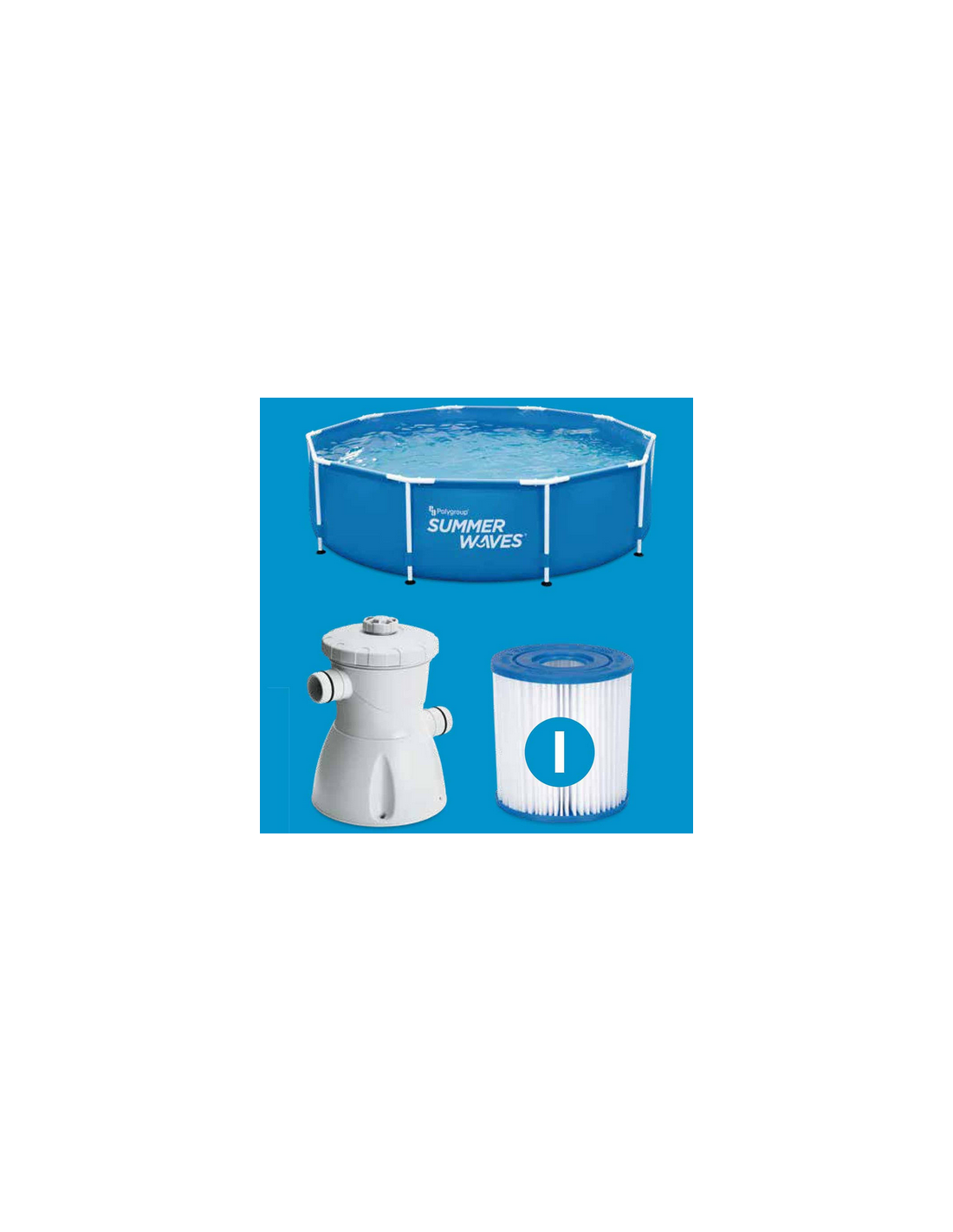 La Piscina fuori terra Tonda della Summer Waves 305x76 H ha la struttura in acciaio anti-corrosione e il telo in Pvc rinforzato a 3 strati. Facile nel montaggio grazie al sistema con giunti a scatto e semplice nel richiudere e deporre a fine stagione. Completa di pompa e filtro a cartuccia
