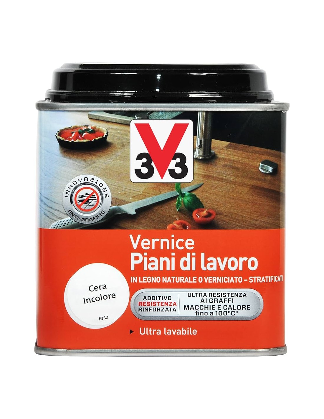Vernice speciale per piani di lavoro ultra resistente alle aggressioni quotidiane come graffi, acqua, macchie, grassi e calore (fino a 100°C), grazie all’additivo “Resistenza Rinforzata“. Compatibile su legno grezzo ma anche sugli stratificati e verniciati. Perfetto per il rinnovo di piani di lavoro e mobili da cucina poichè idoneo al contatto occasionale con gli alimenti*.