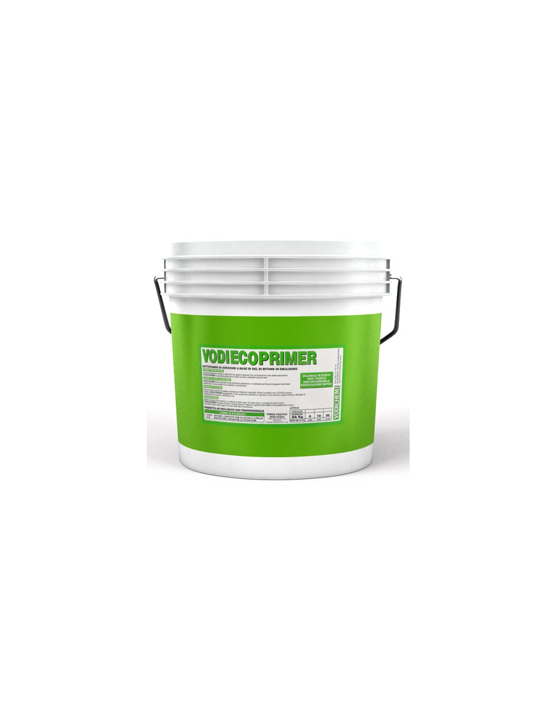 Vodiecoprimer viene generalmente usato come sottofondo antipolvere e di adesione per la posa in opera di guaine bituminose e come protettivo per superfici in calcestruzzo. Può essere usato anche su superfici metalliche. Il colore è marrone quando il prodotto è liquido, e nel momento in cui si essicca diventa nero.