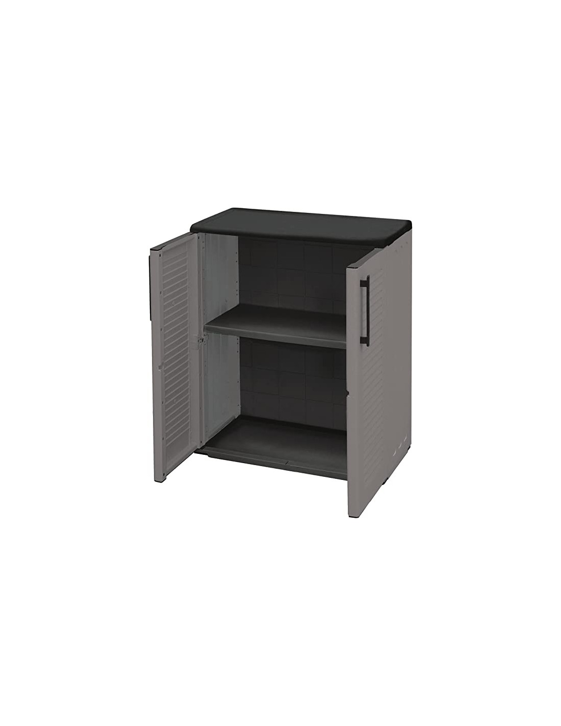 L'armadio Basso in Resina Linea Easy dell' Art Plast ha il piano portante che copre il bordo dell'anta, per una migliore tenuta contro le infiltrazioni dell'acqua. I ripiani sono regolabili in altezza, consentendo l'ottimizzazione degli spazi interni. Le cerniere sono in acciaio ed è dotato di maniglie verticali.