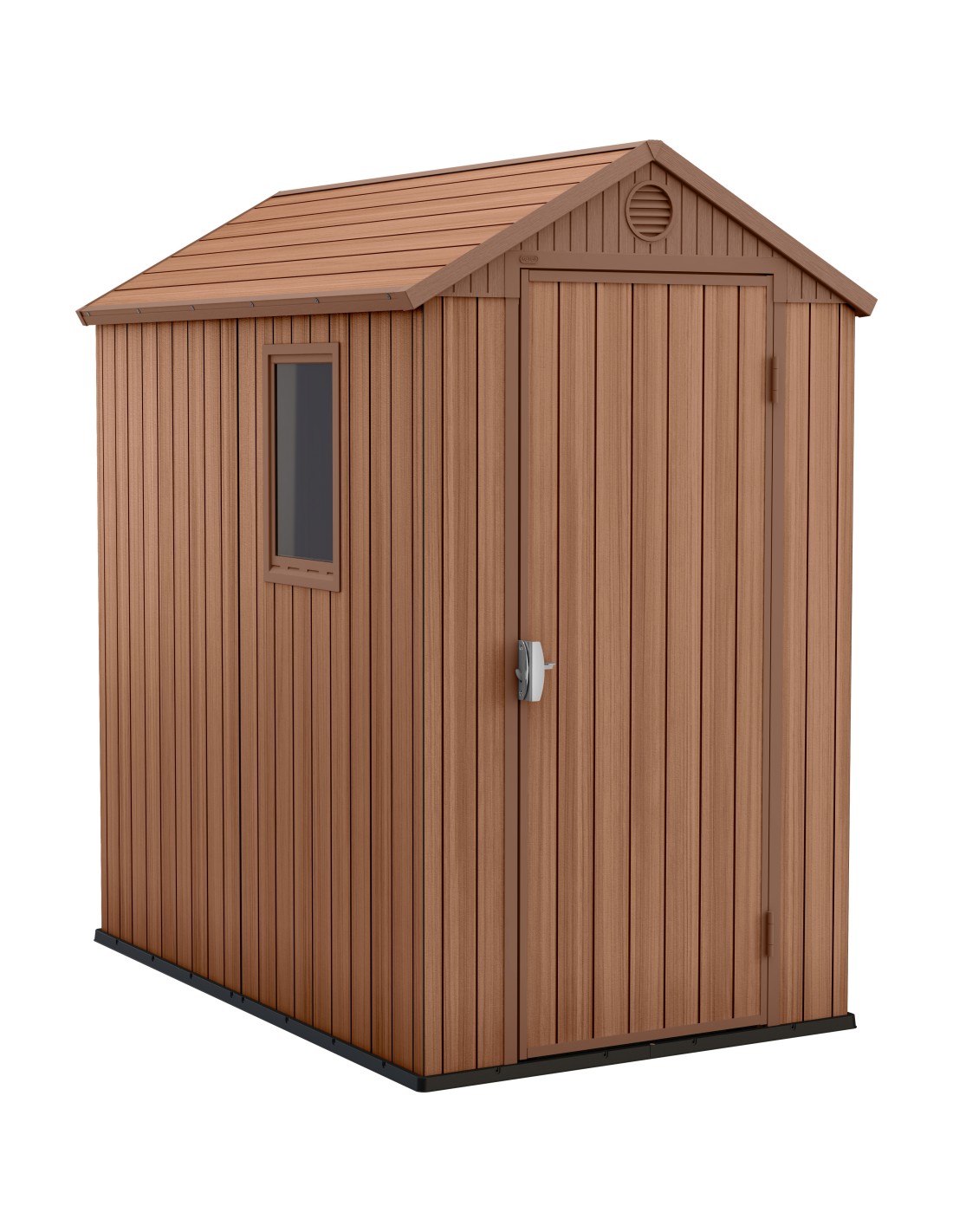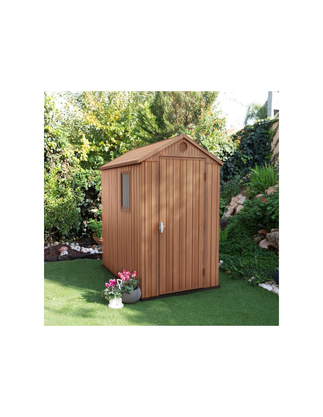 La Casetta Darwin è in resina EVOTECH+, una particolare finitura che riproduce il legno naturale, alla vista e al tatto. E' completa di pavimento e ha una finestra laterale per l'entrata della luce. Le sue pareti sono a doppio strato con rinforzi interni e il tetto, anch'esso rinforzato, resistente agli agenti atmosferici, con una portata massima di 75kg/mq.