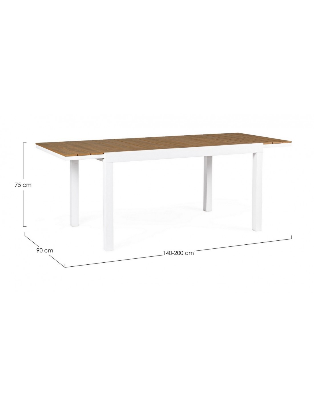 Questo prodotto ha una misura di cm 90x140 con possibilità di allungarlo fino a 200 cm grazie alla prolunga centrale a scomparsa, con la possibilità di ospitare da 6 a 8 persone.