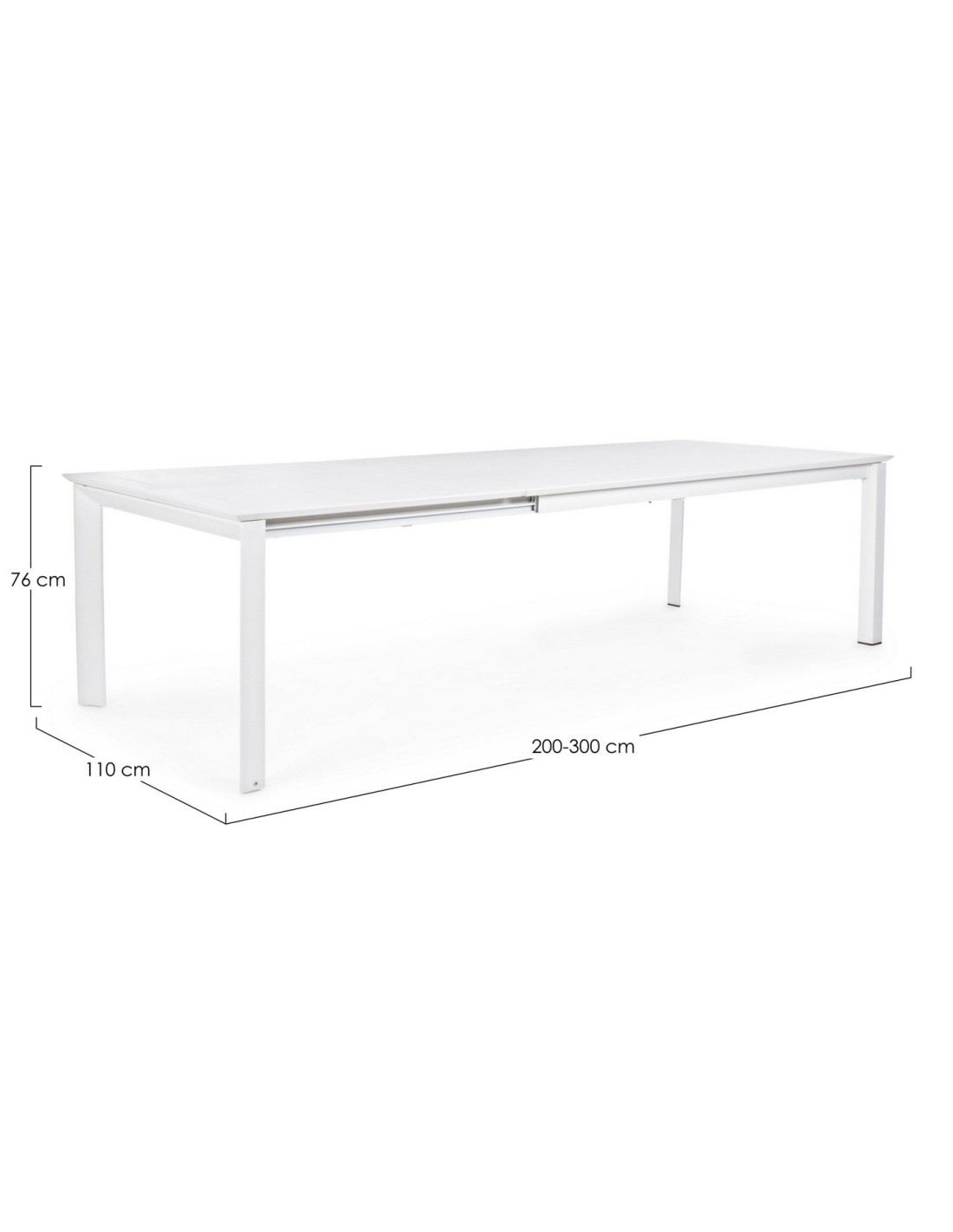 Il Tavolo allungabile Konnor è costruito con materiali di alta qualità, verniciato con polveri, viteria in acciaio inossidabile per una durata maggiore nel tempo. Questo tavolo ha una larghezza di 110 cm, 76 cm di altezza e grazie al sistema di apertura telescopica una lunghezza regolabile da 200 a 300 cm, ottimo per ospitare da 10 a 12 persone.