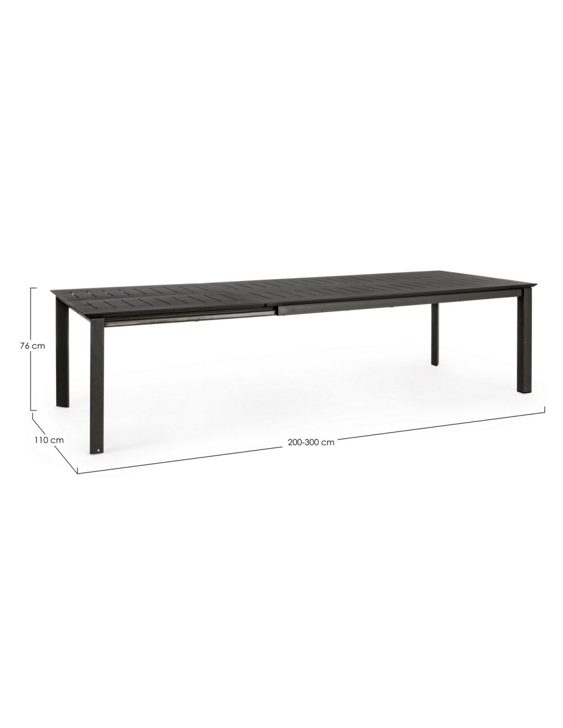 Il Tavolo allungabile Konnor è costruito con materiali di alta qualità, verniciato con polveri, viteria in acciaio inossidabile per una durata maggiore nel tempo. Questo tavolo ha una larghezza di 110 cm, 76 cm di altezza e grazie al sistema di apertura telescopica una lunghezza regolabile da 200 a 300 cm, ottimo per ospitare da 10 a 12 persone.