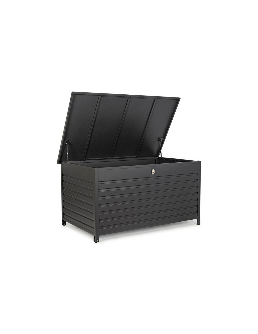 Il Baule Cassapanca porta cuscini Atlantic della Bizzotto è in alluminio verniciato a polvere e quindi ottimo per esterno. Il prodotto è fornito con due ruote in plastica e una maniglia di alluminio per facilitare lo spostamento e la sua apertura è facilitata da due pistoni a gas. Le dimensioni del prodotto sono 97 cm di profondità, 155 cm di lunghezza e 83 cm di altezza, ideale per apporre cuscini e tanto altro ancora.