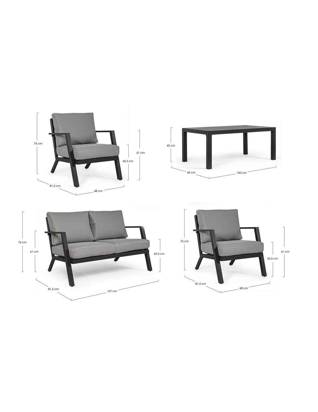 Salotto da Giardino in Alluminio Harley Antracite Bizzotto