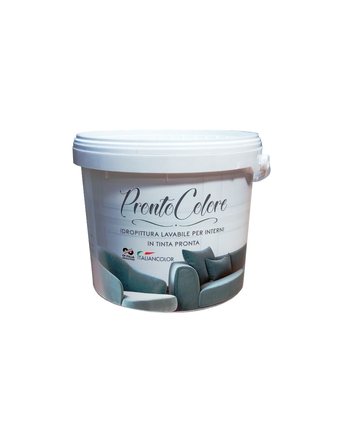 Idropittura "PRONTOCOLORE" lavabile traspirante per interni. Ideale per soffitti e pareti di camere e grandi superfici. Colore grigio metallo. Confezione 2,5 l