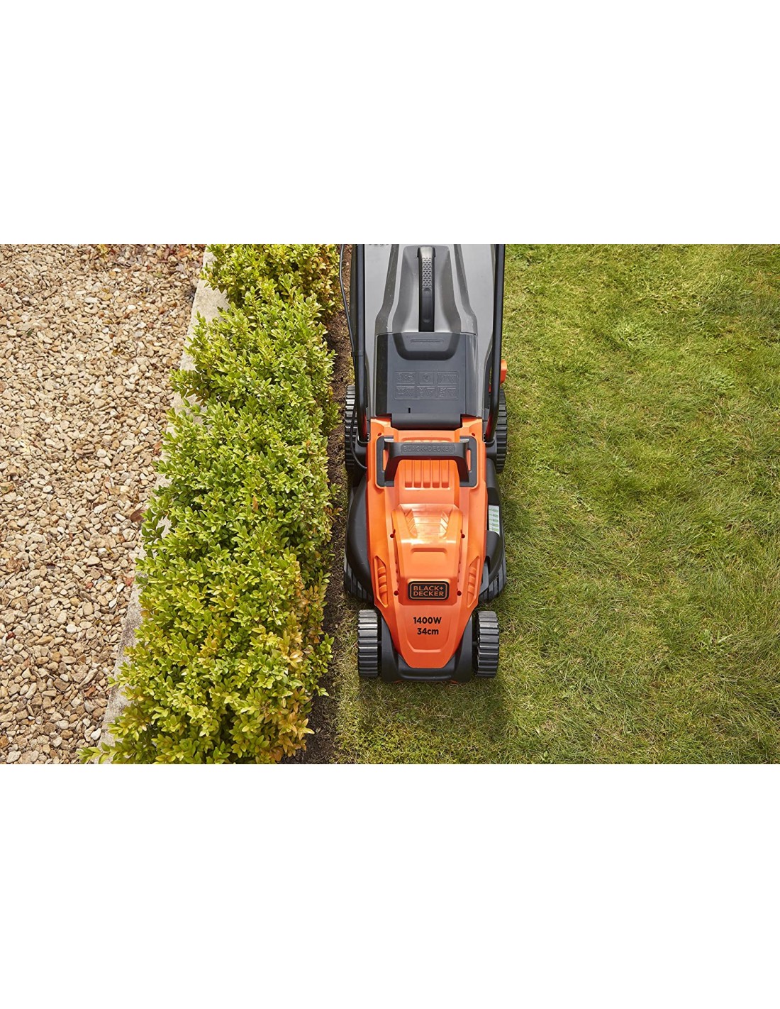 Mod. BEMW461ES alimentazione 220 V potenza 1400 W larghezza taglio 34 cm altezza taglio fino a 70 mm cesto raccoglierba 40 l Impugnatura easy steer. Per superfici fino a 450 mq Telaio in resina termoplastica resistente.