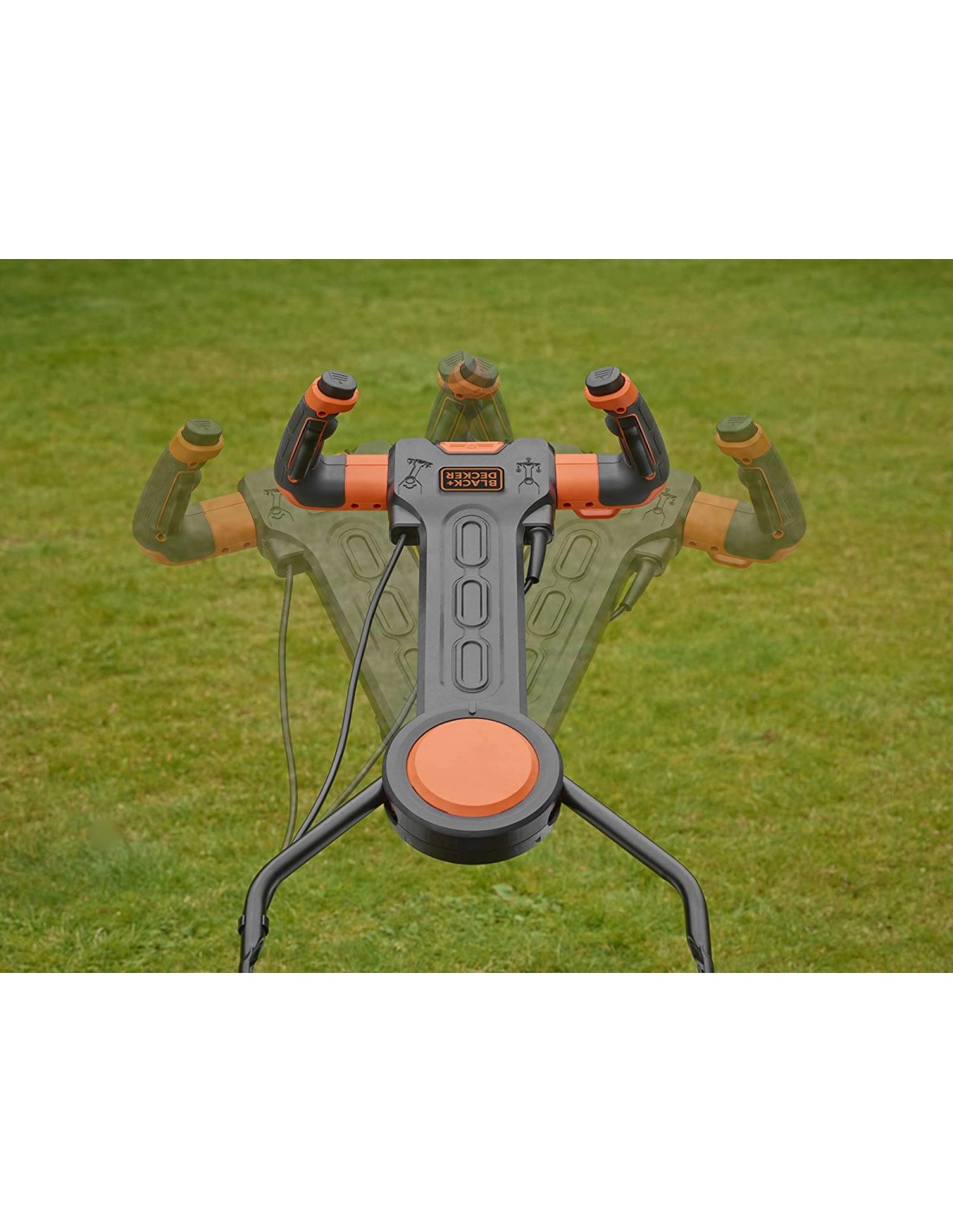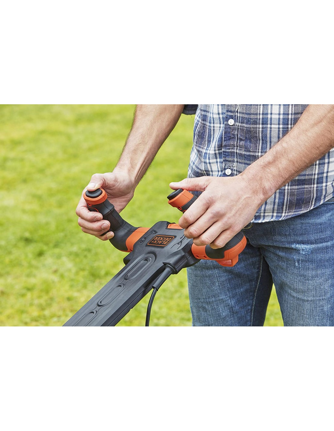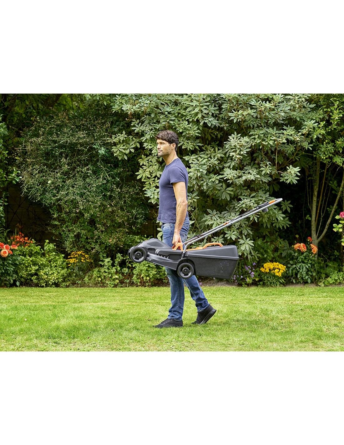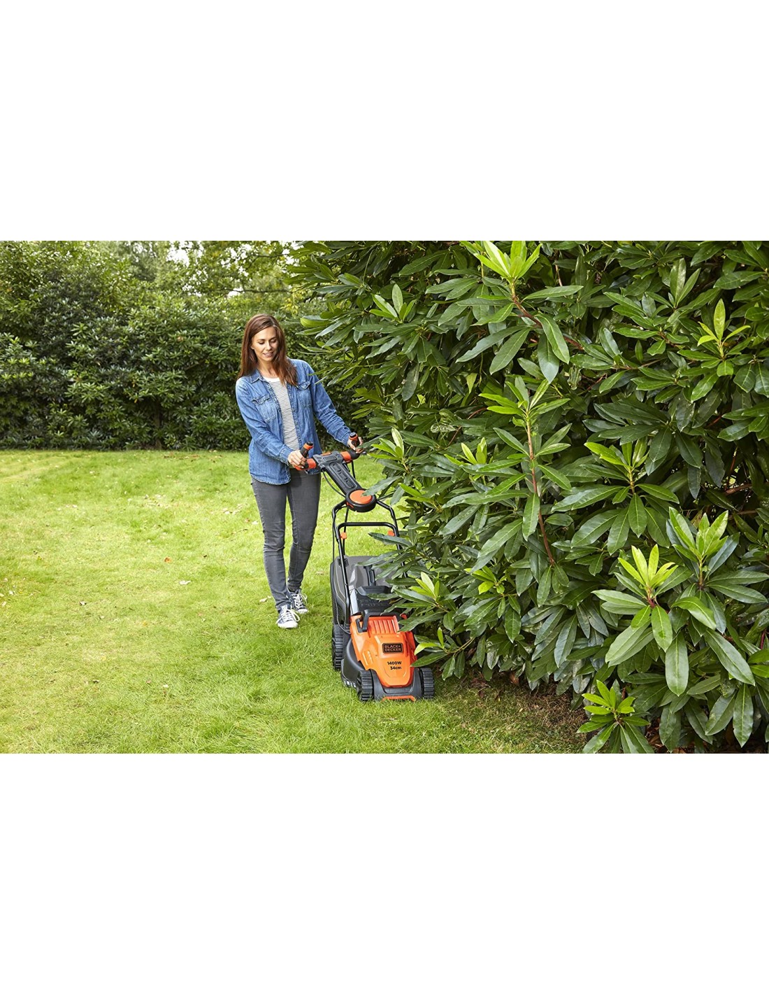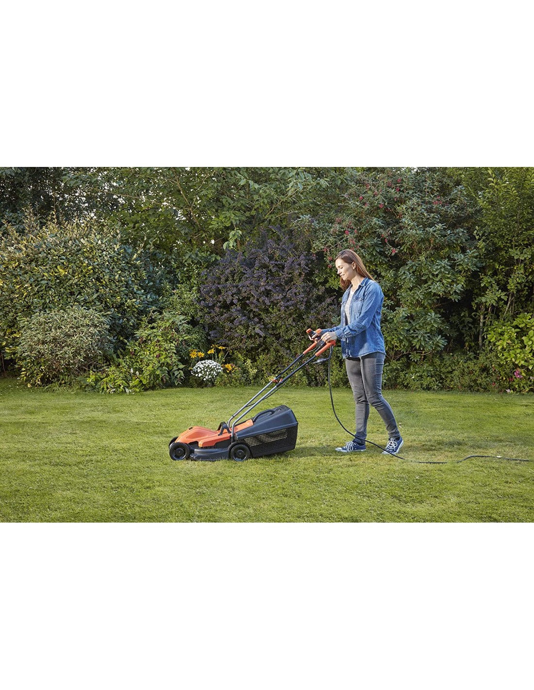Rasaerba 1400 W di potenza con 34 cm di taglio, ideale per giardini di medie dimensioni, con innovativo design dell'impugnatura Easy Steer che consente manovrabilità, accessibilità e massima capacità di taglio anche in presenza di ostacoli. Il nuovo design delle lame garantisce l'80% in più di capacità di raccolta rispetto alla gamma precedente
