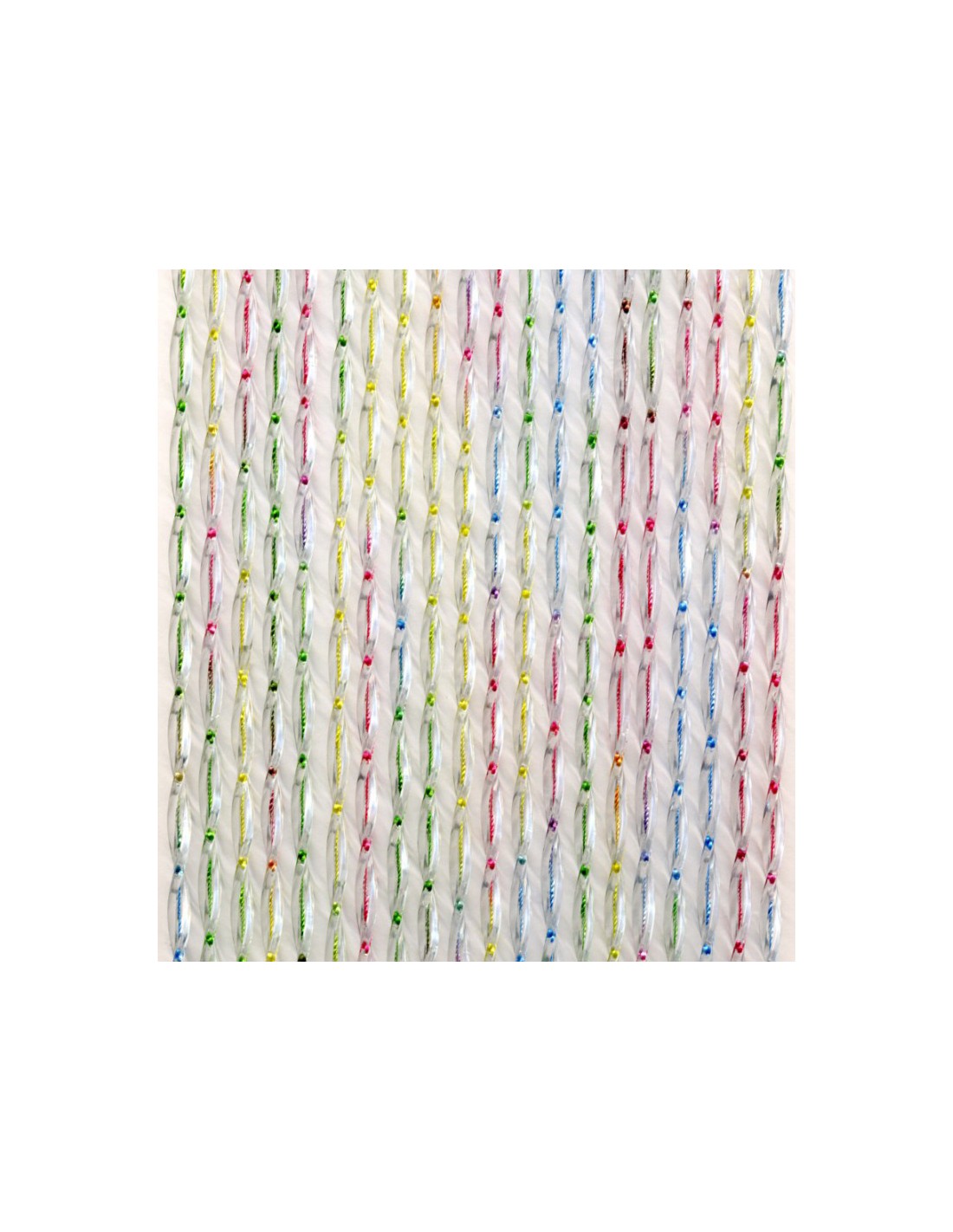 Mod. ELBA realizzato con un profilato antimosche in PVC cristallo di forma elicoidale fuso su un'anima centrale in poliestere che impedisce l'allungamento del prodotto. Composta da 207 fili.Dimensioni 140 x h 240 cm. Colore multicolor.