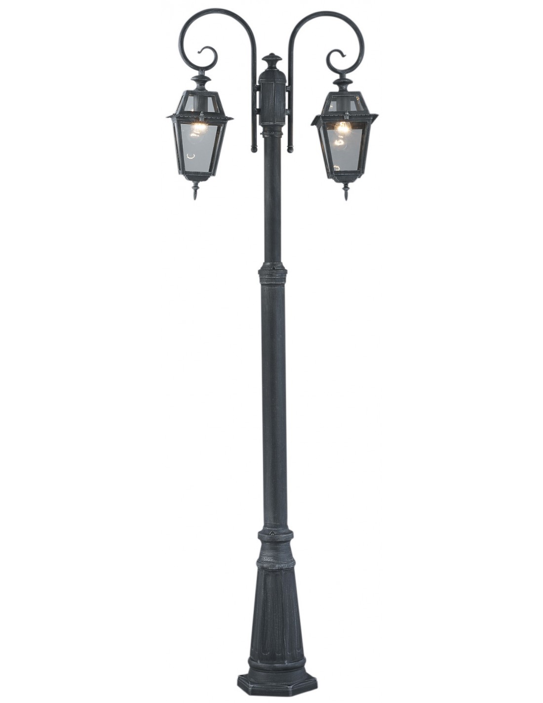 corpo in alluminio pressofusoverniciato con polveriepossidiche.Colore grigio ghisa.Schermo di protezione in vetro.LampioneAltezza 220 cm