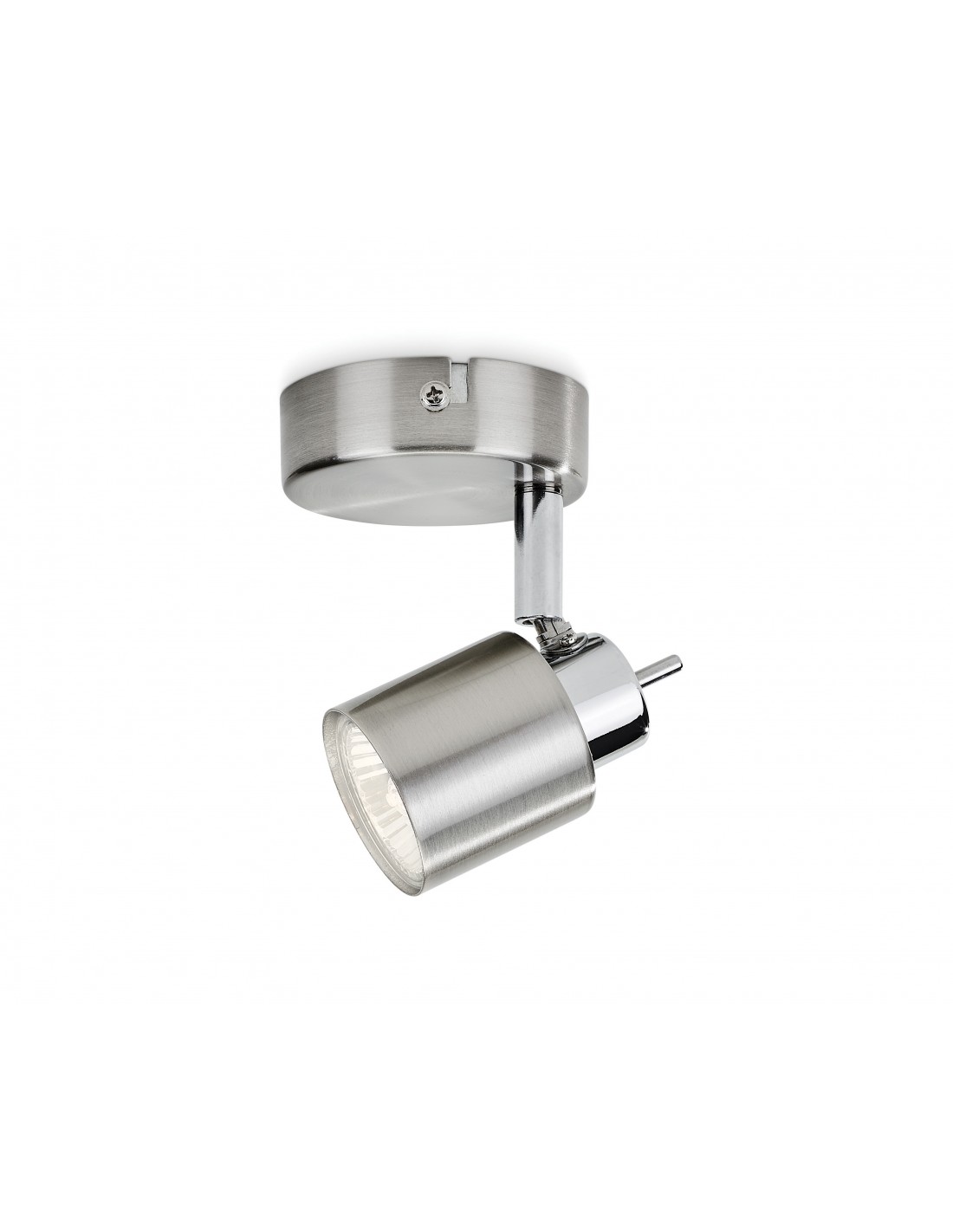 spot regolabile in metallo finitura cromata satinata. Tensione 220/240V - 50/60 Hz - IP20. Attacco GU10. Fornita senza lampade (max 35W). Posti 1. Dimensioni 80x100xh155 mm. Peso 0,200 kg.