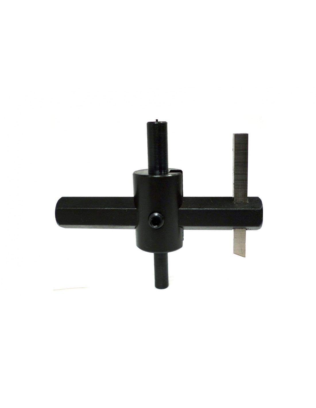 Art. 214.00 per tagliare con precisione laminati e metalli. Attacco cilindrico 8 mm, guida fissa centrante 6 mm. Per forare da 20 mm a 123 mm. Completo di punta in acciaio HSS 6 mm e chiave di servizio. Utensile 5 mm in acciaio HSS al 5 di cobalto. Velocit massima 250 giri/min
