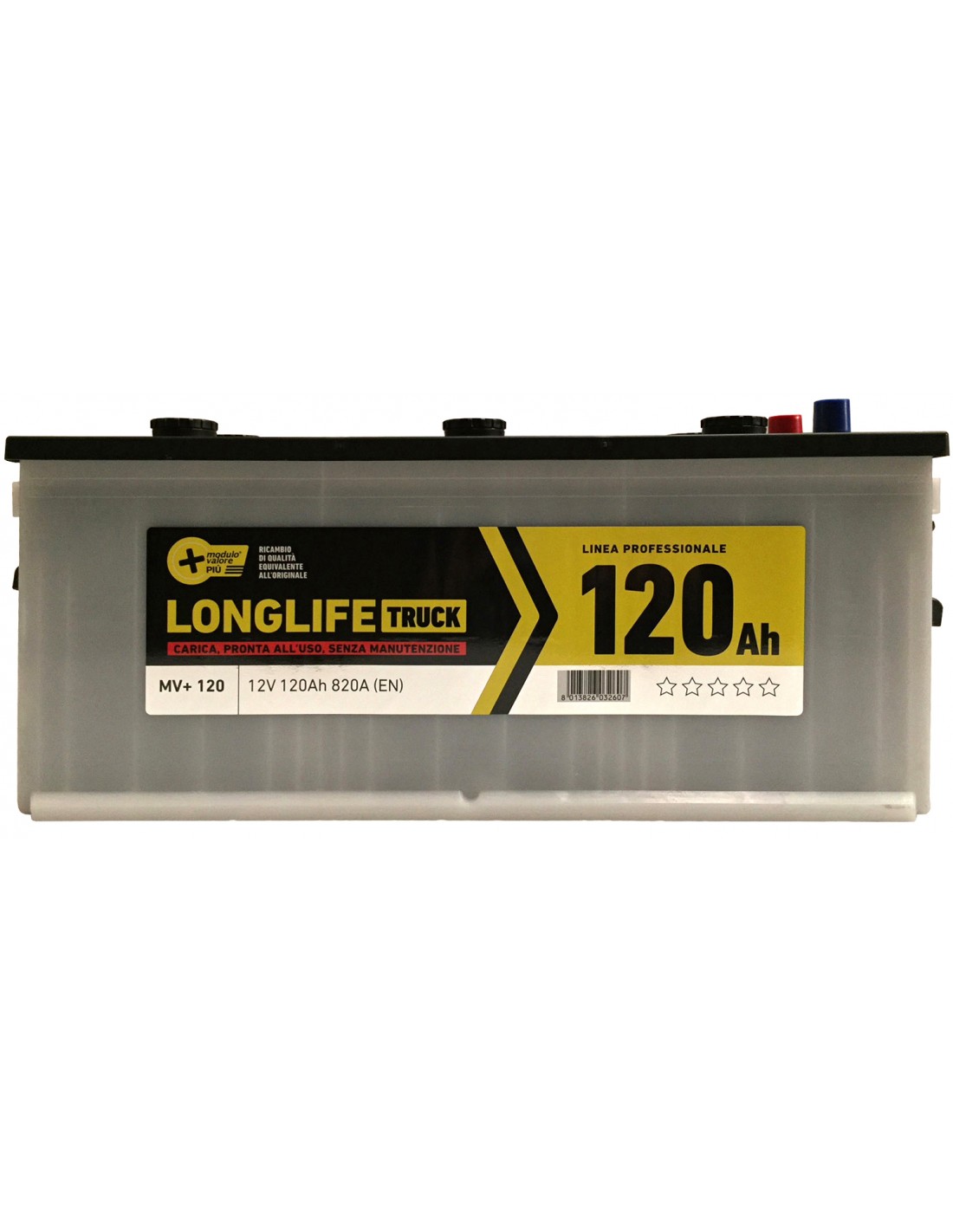 Mod. Longlife. Polarit a destra, sigillate, pronte alluso, senza manutenzione. Certificate TUV. Voltaggio 12V. Capacit 120 Ah. Corrente di spunto 830A. Dimensioni 510 x 175 x 190 mm. Peso batteria 5 32,6 kg.
