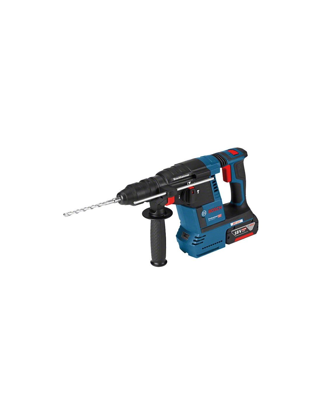 Mod. GBH 18 V-26F. Motore brushless. Batteria 18 V - 6,0 Ah - Litio Velocita a vuoto 0 - 890 giri/min. Percussioni 0 - 4350 colpi/min. Potenza colpo 2,6 J. Attacco SDS-Plus. Foratura diametro cemento 4 - 26 mm, legno max 30 mm, metallo max 13 mm. In 35 minuti la batteria si ricarica dell 80. Illuminazione a Led. In valigetta con 2 batterie 18V da 6,0 Ah, caricabatterie, impugnatura supplementare, limitatore di profondita 210 mm, mandrino a sostituzione rapida, mandrino sostituibile SDS PLUS. Dimensioni 378xh225 mm. Peso 3,600 kg.
