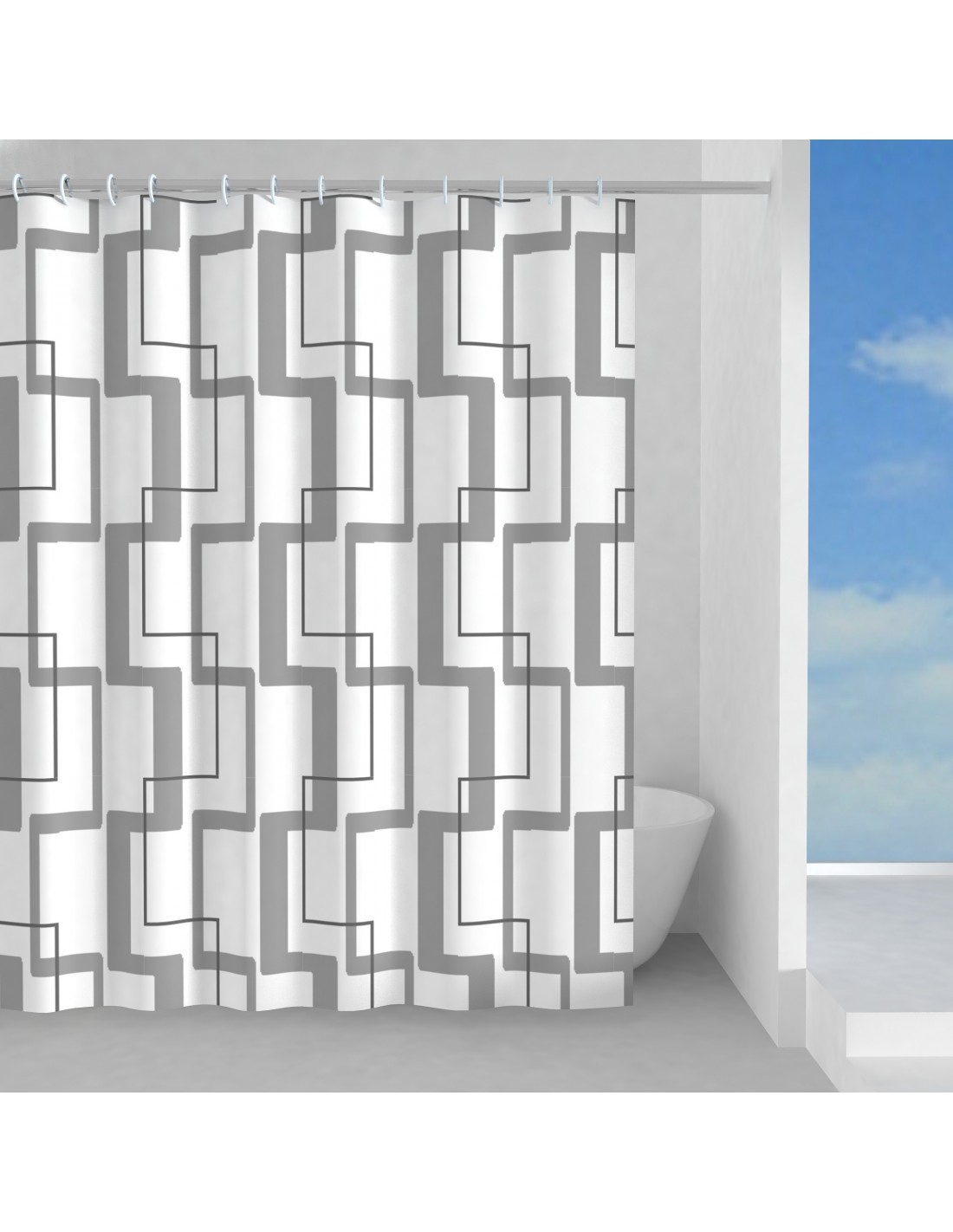 realizzata in poliestere. Completa di anelli. L'orlo inferiore contiene un filo di polipropilene per mantenere la tenda sempre tesa. Dimensioni 120 x 200 cm. Colore grigio. Disegno tecno.