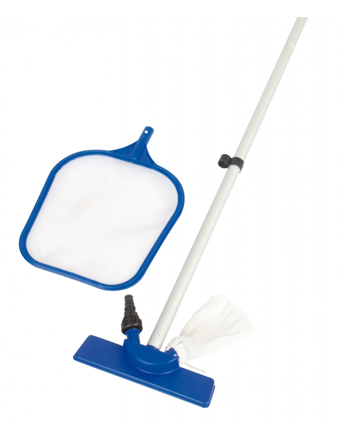 Mod. 58098 composto da: - retino - aspiratore con sacco raccoglitore - manico telescopico in alluminio lunghezza max 254 cm