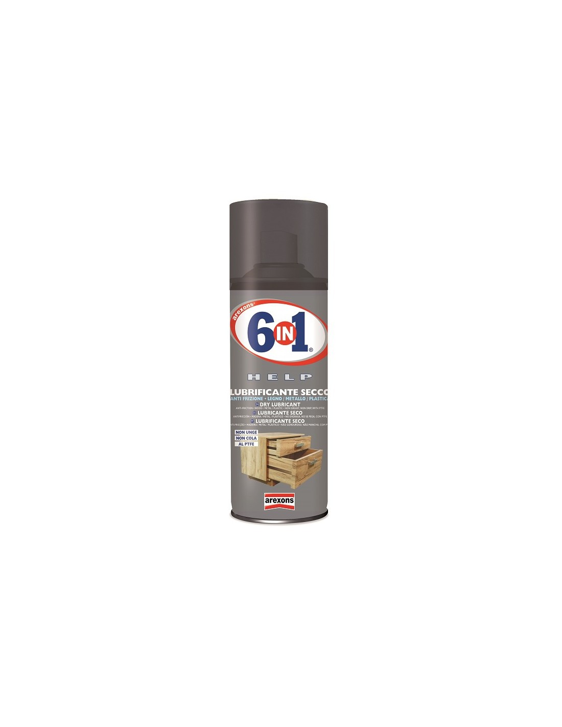 - Il 6in1 HELP LUBRIFICANTE A SECCO 400 ML AREXONS è adatto a facilitare lo scorrimento di tutti i tipi di materiale senza ungere e colare. Forma un film secco che non attira polvere, unto e sporco ed è adatto a lubrificare tanti materiali come cassetti, guide di tende e tanti altri ancora.